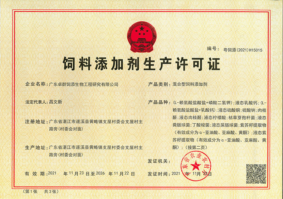·您当前的位置是:首页关于我们饲料添加剂生产许可证1[荣誉资质]